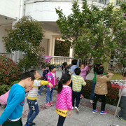 在樱花纷飞的操场上投篮