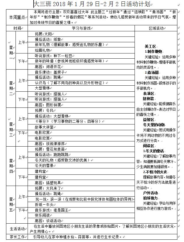 2018.1.29-2018.2.2活动计划