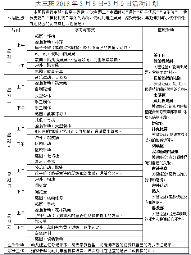 2018年3月5日——3月9日活动计划