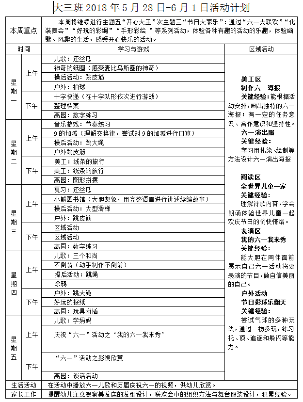 2018.5.28-6.1大三班活动计划