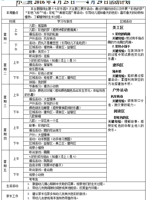 2016年4月25日-2016年4月29日活动计划