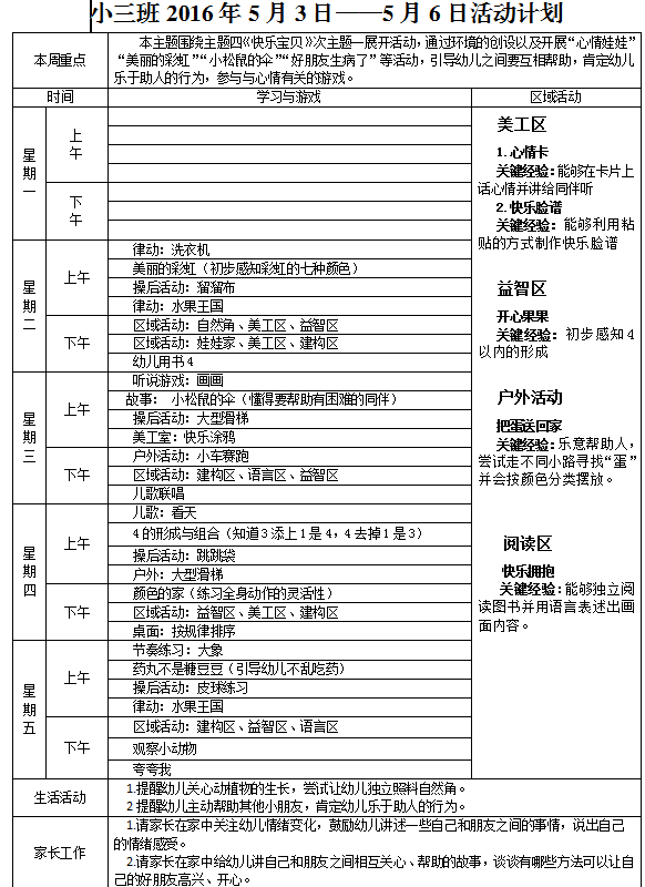 2016年5月3日-2016年5月6日活动计划
