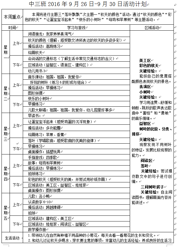 2016年9月26日---9月30日教学安排