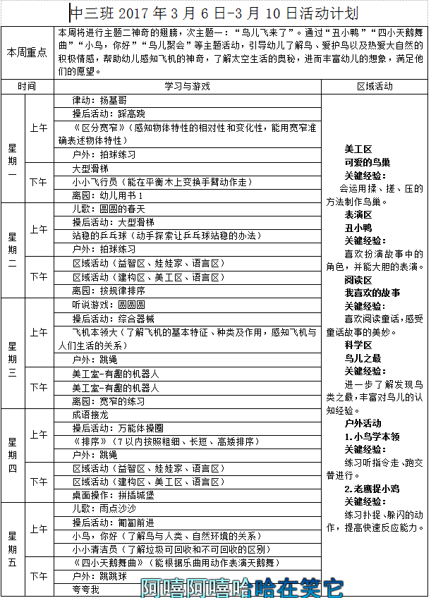 2017年3月6日-2017年3月10日活动计划