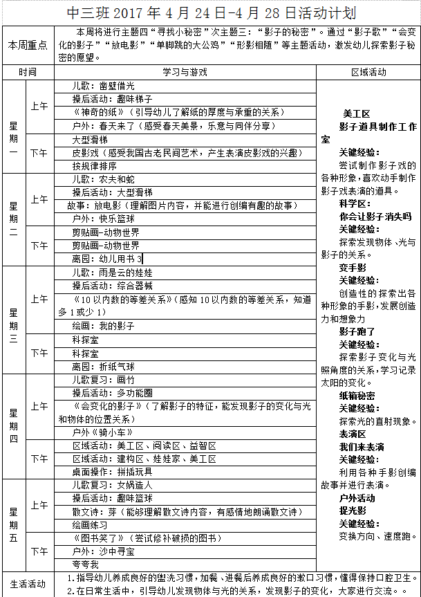 2017年4月24日--4月28日活动计划