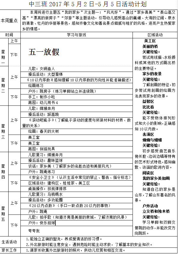 2017年5月2日-2017年5月5日周计划