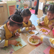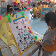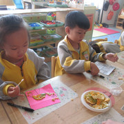 我在用水粉颜色进行创作呢。