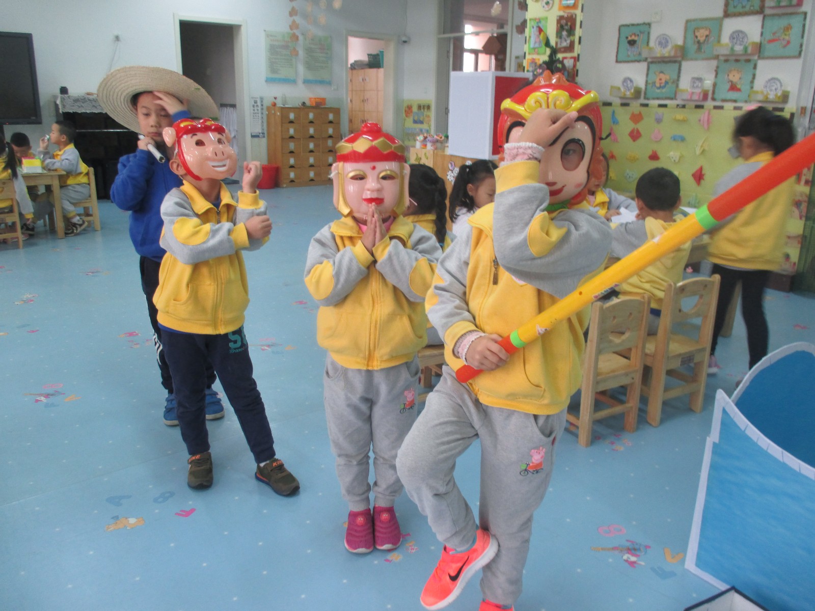 哈哈,我们在表演西游记的游戏