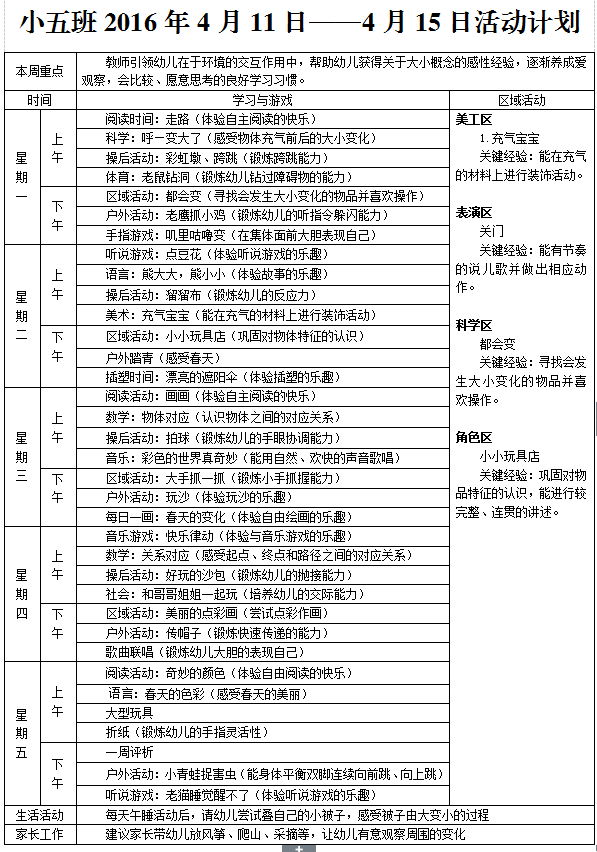小五班2016年4月11日——2016年4月15日