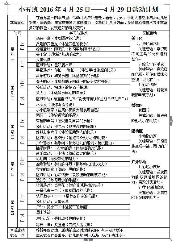 小五班2016年4月25日——2016年4月29日