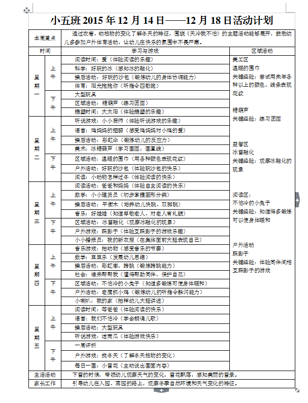 小五班2015年12月14日——2015年12月18日