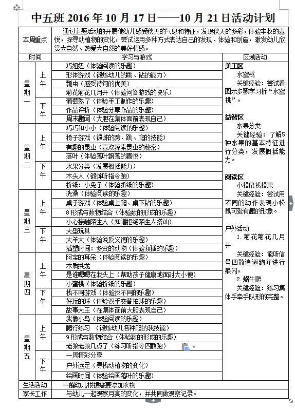 中五班2016年10月17日——2016年10月21日