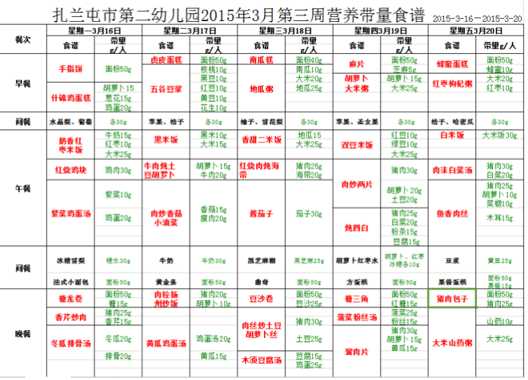 扎兰屯市第二幼儿园2015年3月第三周食谱