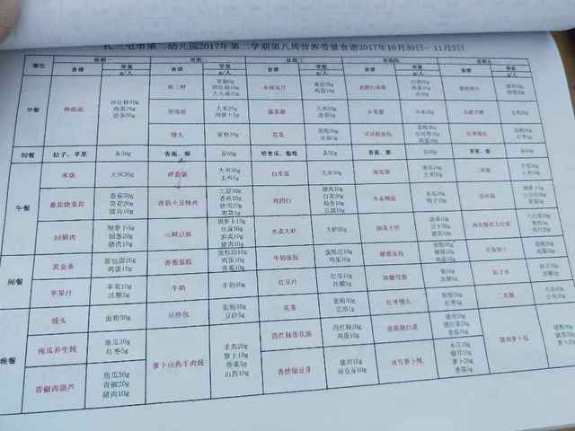 扎兰屯市第二幼儿园2017年第二学期第八周营养带量食谱2017年10月30日- 11月3日