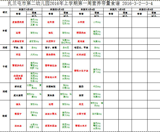 2016年第一周食谱