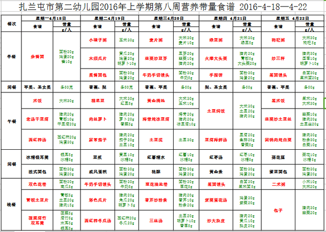 扎兰屯市第二幼儿园第八周营养带量食谱