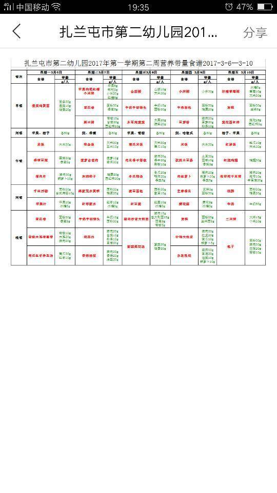 第二周营养带量食谱