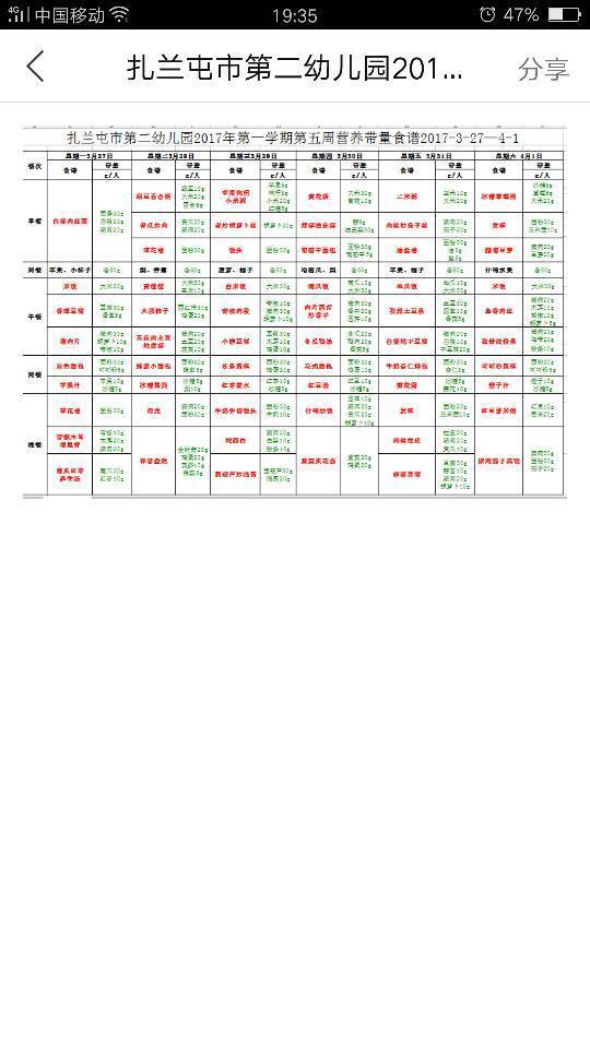 第四周营养带量食谱