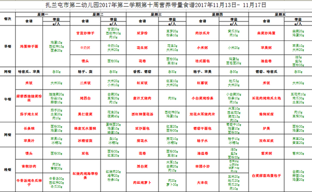 第十周营养带量食谱