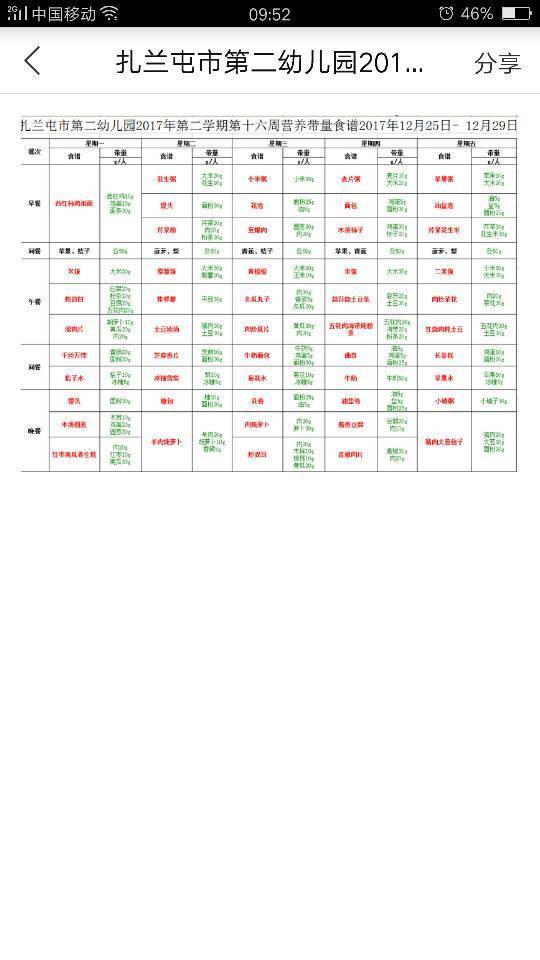 第二幼儿园第16周营养带量食谱