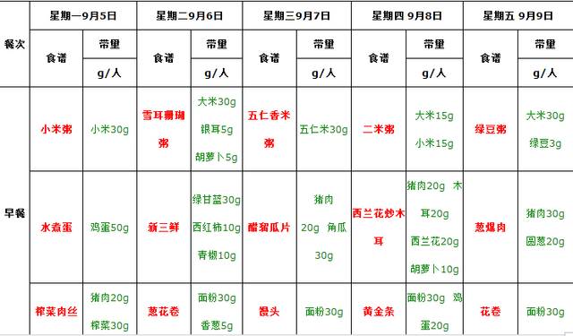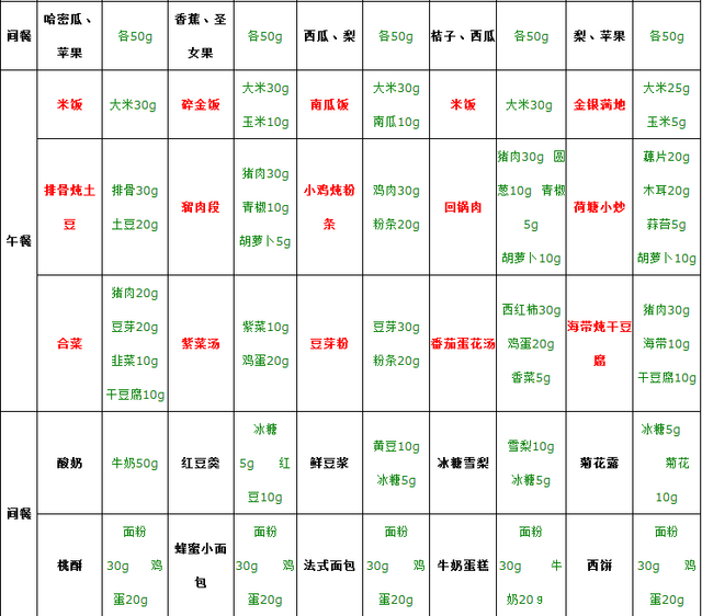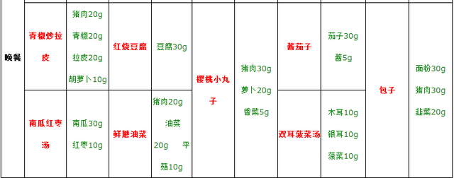 下学期第一周食谱