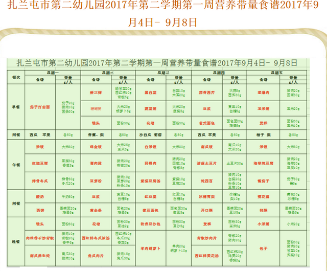 2017年9月第一周食谱