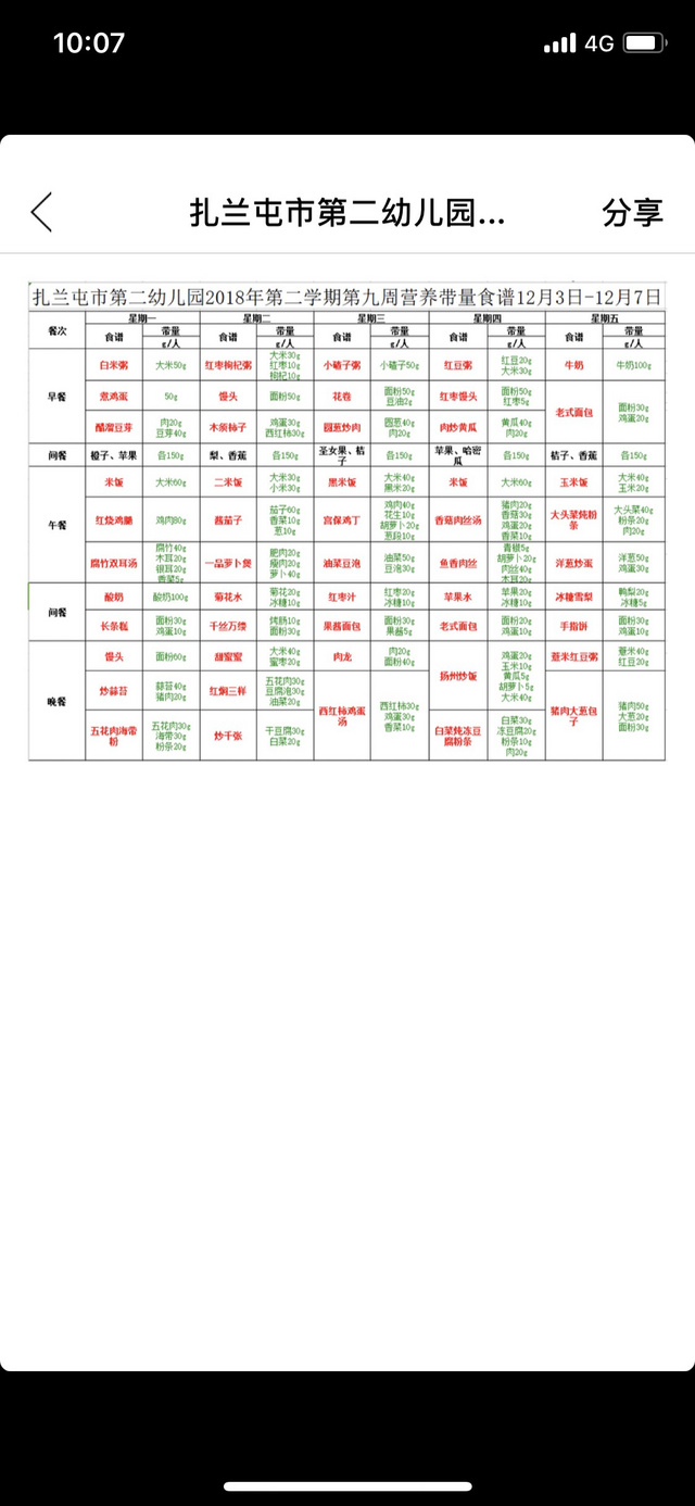 2018年12月份第一周食谱