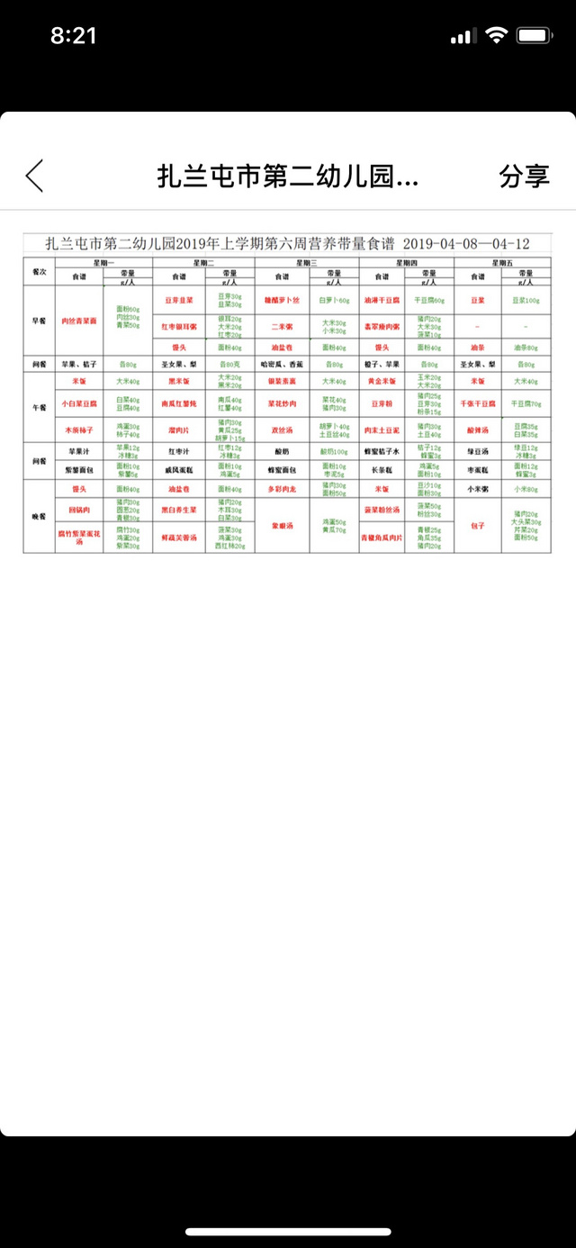 2019.4月8日-4月12日食谱
