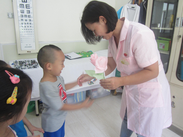 秋风送爽,硕果满园,金秋时节我们迎来第32个教师节。为了让孩子们知道9月10日是教师节,并且培养孩子们从小尊敬老师的美德,我们花二班开展了“亲亲你 我的好老师”一系列活动。 首先,我们一起了解教师节的来历,知道了每年的9月10日是教师的节日。然后和孩子们回顾老师一天的工作,产生理解老师、老师辛苦了的情感,接着让幼儿相互交流如何向老师表达自己的谢意。我们一起歌唱《我爱我的幼儿园》、《幸福的约定》等歌曲向老师表达浓浓的爱意。 第二次活动,我们一起动手制作了美丽的康乃馨和手链、花环,送给我们可爱的老师,让孩子知道不仅对班级老师表达感谢,幼儿园里每一位服务我们的老师都要表达感恩之心,我们派幼儿代表将我们的手链、康乃馨送给办公室的每一位老师,并送上一句“老师,辛苦了,节日快乐”。 通过这个环节,使幼儿对教师的情感不仅仅停留在节日的教育层面上,而是让幼儿从内心去感受表达的意义:因为老师为我们付出了许多,给予我们无私的爱,所以我们才要感谢和回馈老师的爱。让幼儿因为懂得爱所以去爱,而不是因为应该爱才去爱。