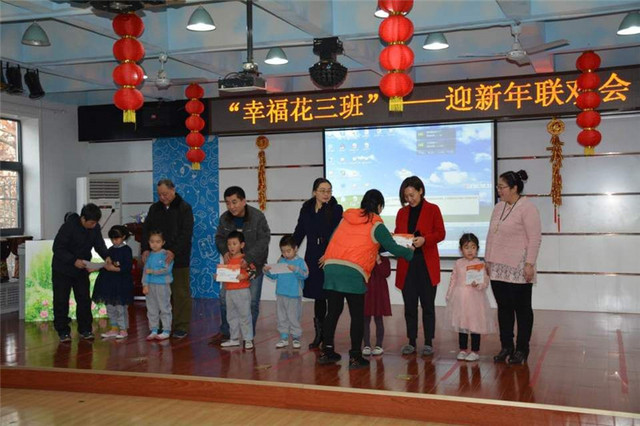 时光从日历一页飘落下来,我们又来到了岁末年尾。猴年悄然而至,鸡年款款而来,过去的一年我们用汗水浇灌,放飞希望,新的一年,我们温馨和谐,收获喜悦。2017年的脚步越来越近了,在这辞旧迎新的日子里,花三班特举办了“迎新年,庆元旦”亲子联欢会! 小朋友们用自己的歌声、舞姿,来表达自己的喜悦之情。小朋友们表演的集体节目有大合唱《新年好》《嗡吧吧》《小脚》《洗脸擦手》《鸽子》《快乐哆来咪》等等;儿歌朗诵:《牛来了》、《墙上落下一个瓜》、《小鸭子》、《一、二、三、四、五》、《问》;语言表演:古诗《杳杳寒山道》绕口令《八百标兵奔北坡》《鹅过河》;儿歌《普通话顺嘴流》 故事《蝈蝈蛐蛐说大话》;亲子相声《吹牛》;家长节目《女巫扫帚排排坐》;幼儿个人节目《和快乐在一起》《你好,谢谢》《大王叫我来巡山》等等,真是精彩纷呈! 过去的一年我们家园共育,配合默契,老师指导有方,家长配合积极,相信2017年将是我们更精彩的一年。