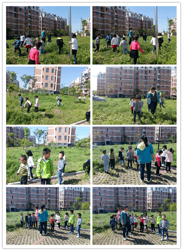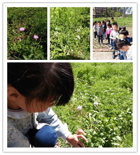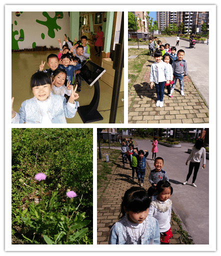 活动反思: 我们利用华阳小区的有利资源,让幼儿带着猜想和疑问去寻找春天的变化。他们发现了很多春天的秘密,小草绿了,小树发芽了,杜鹃花开了,还发现了一些不知名的植物也长出了新芽,孩子们无比的快乐,也将自己的发现让老师的相机拍了下来。我们还去看了之前在植树节种的小树苗,看看它们的身体状况好不好?我们还在小区的凉亭里进行休息,并说一说自己所看到的与同伴进行分享。我们还进行了集体留影,留下这美好的一刻。在我们幼儿园附近还有很多有意义的环境资源可以为我们教学所利用,如:高铁站、汽车站……都可以成为我们走出去的环境资源,在“大自然大社会”中以“活教材”支持幼儿的学习和生活,有助于幼儿自主快乐的学习,有利于培养幼儿对学习的兴趣,拓展幼儿的经验和视野。同时让幼儿在自主、开放的氛围中,多方位、多渠道构建健全的人格、促进全面发展,这样的活动形式不仅可以丰富教学内容、方式,也让幼儿更直观更真实的了解了大自然,感受家乡的美,同时也丰富了幼儿的社会性情绪情感。