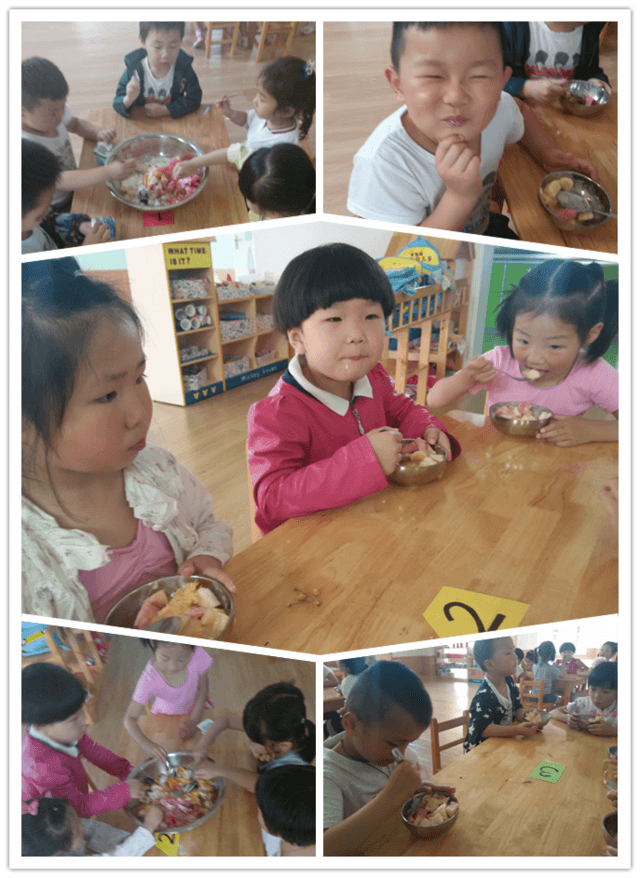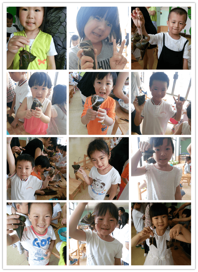 在端午佳节来临之际,我们班开展了丰富多彩的活动来庆祝这个传统节日。 活动一:制作水果沙拉 目标: 1、学会一些简单的生活动作:切、倒、拌、盛。 2、与同伴一同分享,体验活动的趣味性。 在这个活动中,感谢家长的积极配合带来各种各样的水果(苹果、香蕉、梨、樱桃、提子、西瓜、桃子、芒果)孩子们自己拿水果刀将香蕉切片;自己动手将酸奶均匀的倒在切好的水果中;并用勺子进行轻轻的搅拌(让水果与酸奶充分的搅拌在一起,吃起来会更美味):接着孩子们用勺子将搅拌好的沙拉盛在自己的碗中(吃多少,盛多少);最后就是孩子们最喜欢的吃的环节。看着他们一口一口吃掉自己的劳动成果,脸上带着幸福的笑容,脸上时不时的沾上些酸奶,真是开心!(我们还将多余的水果沙拉分给了宝宝班的弟弟妹妹,让他们也来尝一尝) 紧接着是我们生活老师——郑老师自制的三明治(面包片、番茄酱、黄瓜、香蕉),孩子们吃完一份后,走到老师的身边询问能不能再吃一份。看着他们那可怜兮兮的小眼神,真是哭笑不得! 活动二:包粽子 目标: 1、学习包粽子的方法,卷漏斗、放米、包裹、绑绳。 2、了解五月初五是我国传统佳节——端午节,知道要吃粽子、划龙舟、放艾叶、戴香囊。 3、体会爱家乡、爱祖国的情感,增进对传统文化的了解和兴趣。 活动中,幼儿园为孩子们准备了粽叶、糯米、红豆,我们请宝宝班的马老师为孩子们讲解和现场展示包粽子。展示完毕后,芽芽班的孩子们都跃跃欲试想要大展身手(宝宝班、果果班的孩子年龄小动手能力还不是很强),他们是一个个有模有样的包了起来,包完后还分享给弟弟妹妹们。真棒!有几位孩子还包了很多个,想跟爸爸妈妈一起分享。 活动三:吃粽子 目标: 1、学会自己剥粽子,先把绳子解开再将粽叶剥开。 2、体验自己的劳动成果。 早上的粽子包好后,我们厨房的孙老师立刻准备好电饭锅,将孩子们包的粽子进行水煮,等到孩子们下午起床后就能吃到香喷喷的粽子了。 下午起床了,孩子们要吃点心了——粽子。分发粽子的时候都要找寻自己包的粽子。开始吃的时候出现了一个问题:大多数孩不会剥粽子? 这是怎么回事呢?原来在家里的时候,爸爸妈妈或是爷爷奶奶怕孩子弄脏小手或是衣服,提前将粽子的粽叶剥去,把筷子插在粽子上方便孩子进食。可是这让孩子失去了锻炼的机会,让他们失去了学习自己动手的机会。所以导致在吃粽子时不会剥粽叶。我们应该多让孩子们学会一些生活中简单的技能。 吃完后孩子们都吧唧小嘴,嘴里还说着真好吃!放学时,全园的孩子都分到一个粽子,让孩子们拿回家与自己的爸爸妈妈分享。