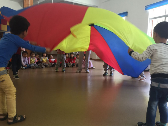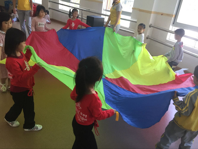 好好玩,大大的彩虹伞真好玩,老师的带领下,我们玩的可开心了。