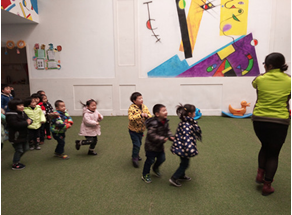 设计意图: 《幼儿园教育指导纲要(试行)》强调:幼儿园要根据幼儿的特点,组织形式多样、生动有趣的体育活动、并利用幼儿园感兴趣的方式发展基本动作,提高动作的协调性、灵活性,激发幼儿的参与体育活动的愿望。 小班刚入园的幼儿在情感上处于个体向集体的过渡期,交往意识较弱,同伴之间的关系不稳定。双脚并拢行进跳是小班幼儿一项基本动作发展,但在平时的观察中很多幼儿经常会出现双脚分开,双脚先后落地不正确的跳,因此,我选择幼儿感兴趣、安全简便的圈作为活动材料,创设情境,在和兔妈妈抱抱、和好朋友抱抱、互相抱在一起躲避大灰狼的这样一个游戏情节贯穿活动,吸引小班幼儿积极参与体育活动,让幼儿在轻松、愉快的氛围中掌握双脚并拢行进跳的技能,感受和同伴游戏的快乐。 活动目标: 1、练习双脚并拢行进跳,锻炼腿部肌肉力量。(能力) 2、通过一定的游戏情境体验跳跃活动的乐趣。(认知) 3、喜欢参加体育活动,愿意与同伴快乐的抱一抱。(情感) 活动准备: 1、头饰(大灰狼、兔子),呼啦圈,音乐(《开火车》《三只熊》《兔子舞》)。 2、配班教师扮演大灰狼。 活动重、难点:练习双脚并拢行进跳。 活动重难点:练习双脚并拢行进跳。 活动过程: 一、师(头戴兔妈妈头饰):宝宝们,我是兔妈妈,你们是兔宝宝,今天妈妈要带你们一起坐火车去大森林旅游喽,开心吗?跟着我一起出发吧!(《开火车》音乐) 师:火车到站了,兔宝宝们下车吧。 二、1、妈妈抱抱 师:我的宝宝都下车了吗?妈妈好喜欢你们呀,快来和妈妈抱一抱。(幼儿扮兔宝宝跟兔妈妈拥抱。) 2、热身运动 师:我有这么多可爱的兔宝宝,真开心,我们一起来先活动活动吧。(兔妈妈带着兔宝宝随音乐做热身。 3、练习双脚并拢跳、双脚并拢行进跳 (1)师:兔妈妈带给宝贝们一个好玩的东西,看是什么? 我拍球,球会怎么样?请兔宝宝们双脚并拢,和皮球一起跳一跳。 (2)师:刚才皮球是在原地跳,看皮球还会怎样跳?(练习双脚并拢行进跳)请兔宝宝们双脚并拢,和皮球一起往前跳一跳。 三、游戏《大灰狼来了》 1、把与幼儿人数相同的呼啦圈散放在场地上,让幼儿自由跳着玩耍。 2、师:不好了!大灰狼来了,兔宝宝们快跳到山洞里去!(引导幼儿一人跳进一个山洞。)