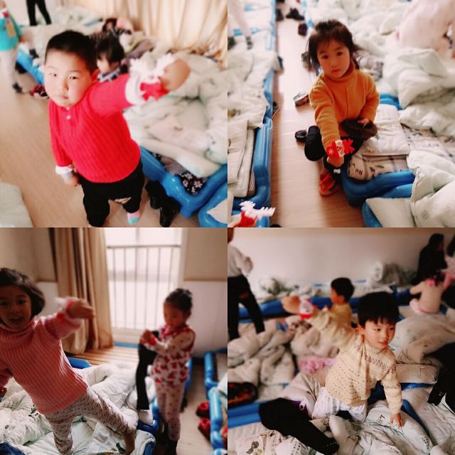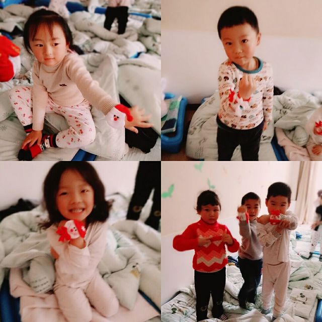 惊喜可不仅仅停留在上午,中午宝宝睡得香甜的时候,我们老师偷偷地化身成为送礼物的圣诞老人,将已经准备好的圣诞啪啪圈,悄悄的放在每个幼儿的床下面,宝宝们一觉醒来,发现礼物!一个个开心的在床上蹦了起来!