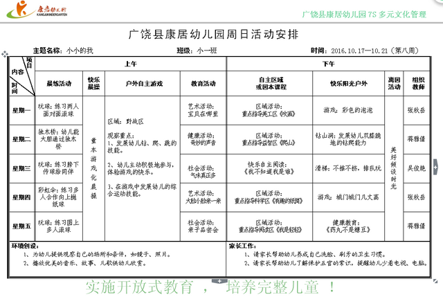 广饶县康居幼儿园第八周周计划