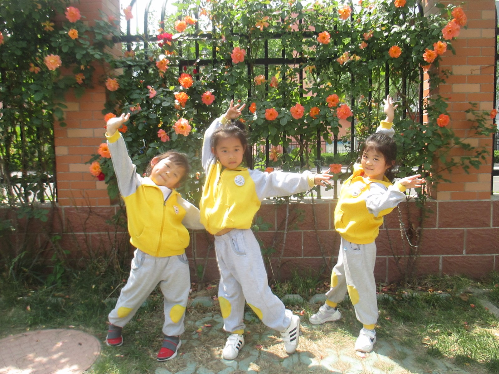 我们学花一样随风摇摆。