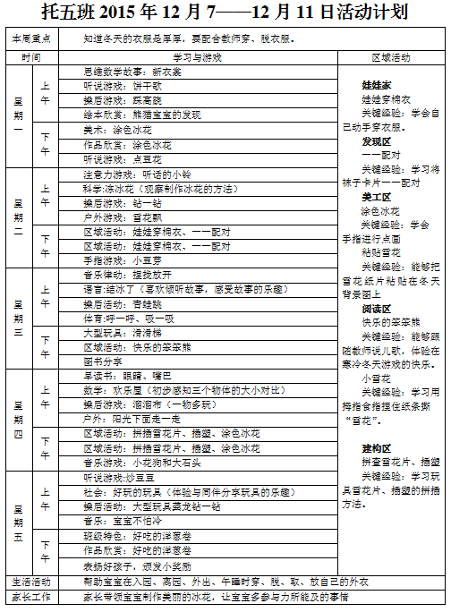 托五班2015年12月7日—12月11日活动计划