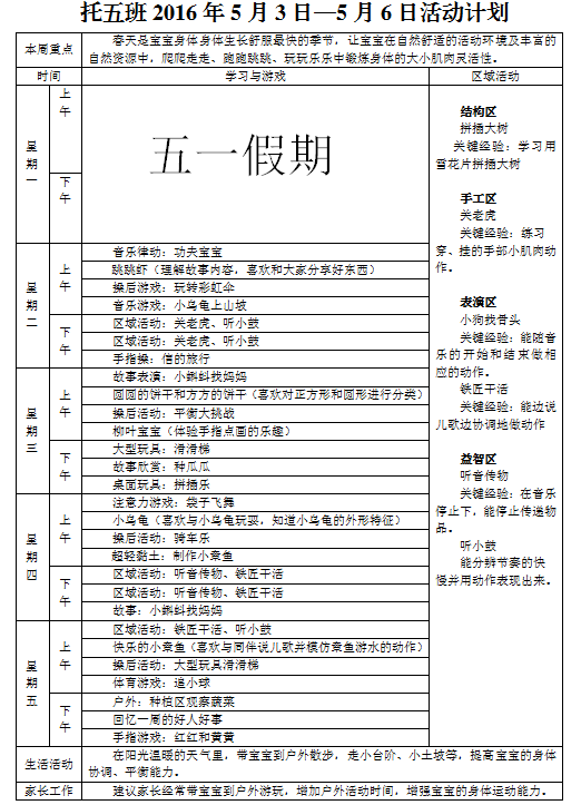 托五班2016年5月3日—5月6日活动计划