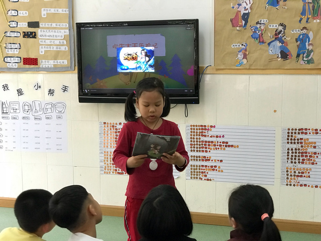 老师觉得,通过朝听幕讲的活动,老师看到了孩子的进步,孩子们从准备故事、讲故事、总结故事,不但让自己有了锻炼的机会,还让其他同学看到了自己身上的闪光点。