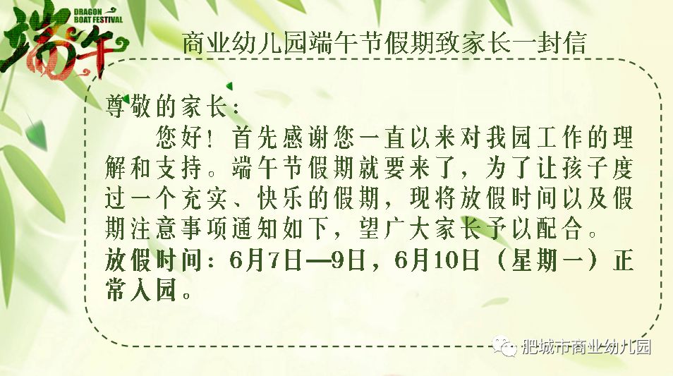 商业幼儿园端午节致家长一封信
