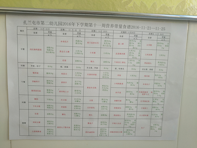 第二幼儿园第十一周营养食谱