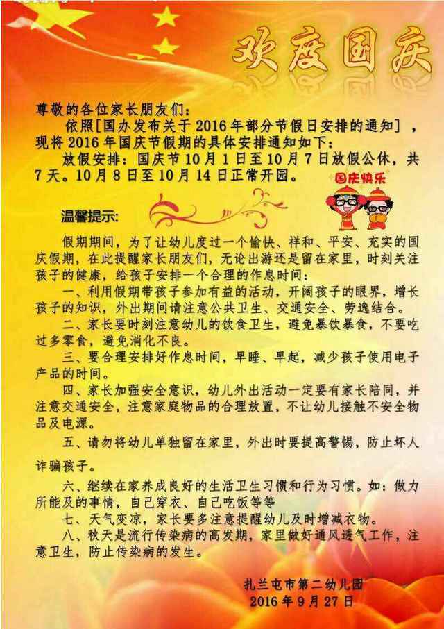 国庆节放假通知