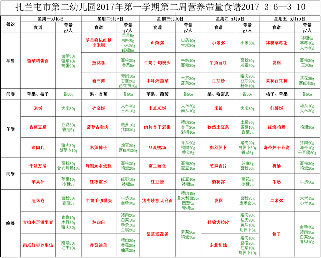 第二周食谱