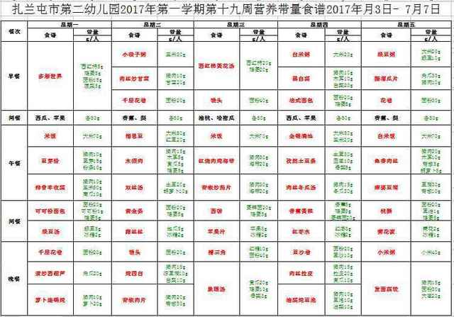 第十九周食谱