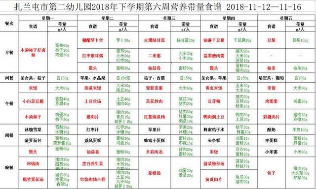 第六周食谱