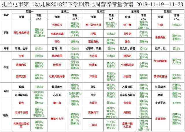 第七周食谱