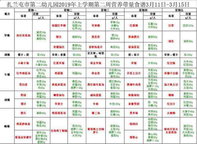 第二周食谱