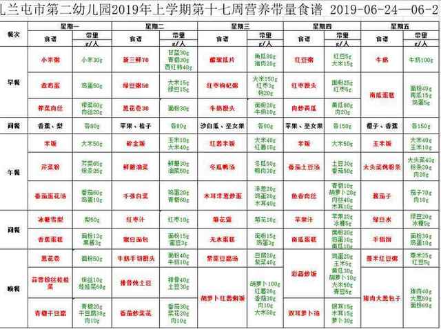 第十七周食谱