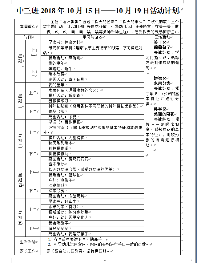 十月第二周周计划